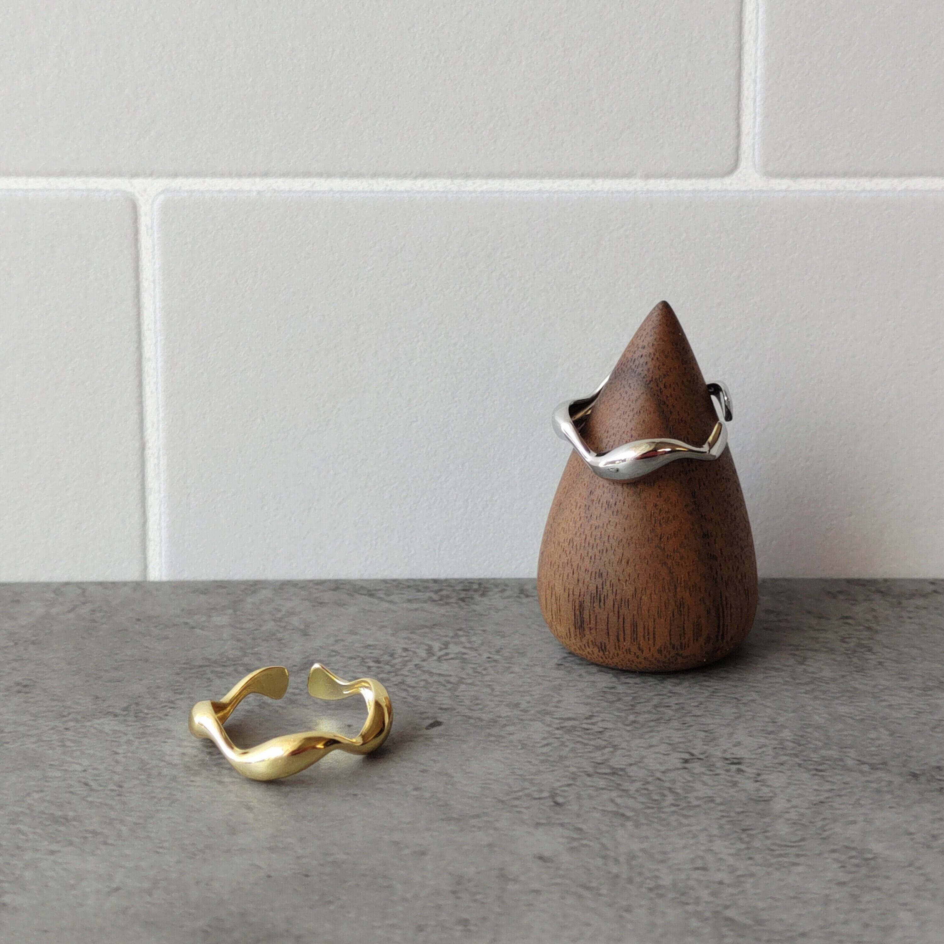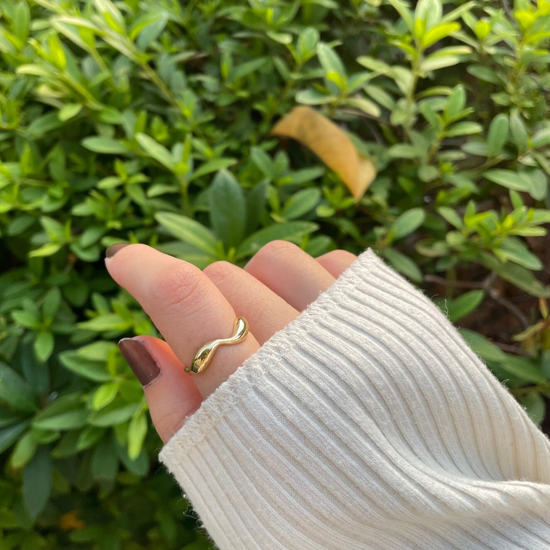 不規則なふくらみをつけた曲線美が美しいリング。 線を帯びたデザインがこなれた印象に、ほど良いボリューム感があり、手元のアクセントになります。