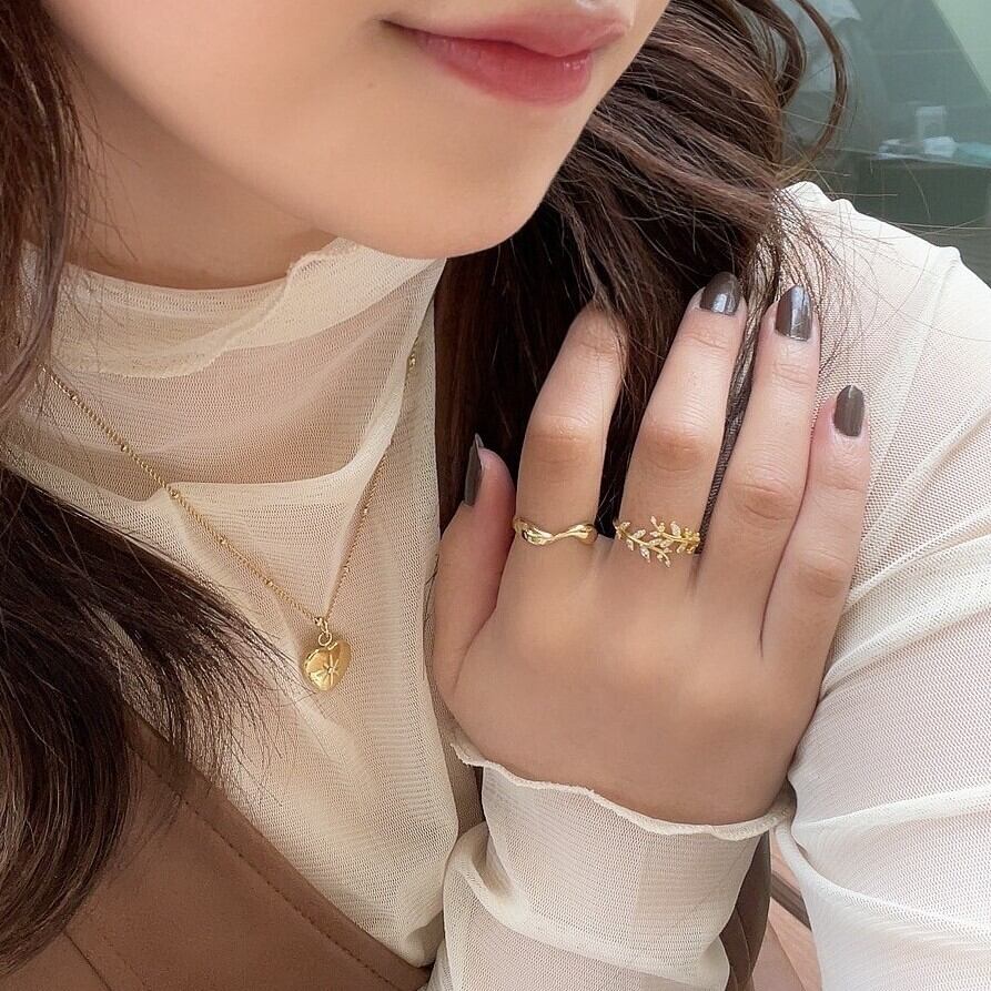 ゴールドとシルバーを、それぞれ別の指につけてもお洒落です。