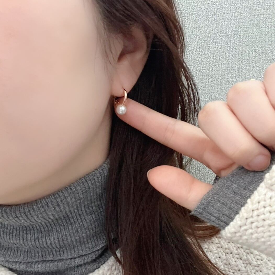 高級感のあるピンクゴールド色が印象的なフープに、大きなパールが付いた大人可愛いピアス。