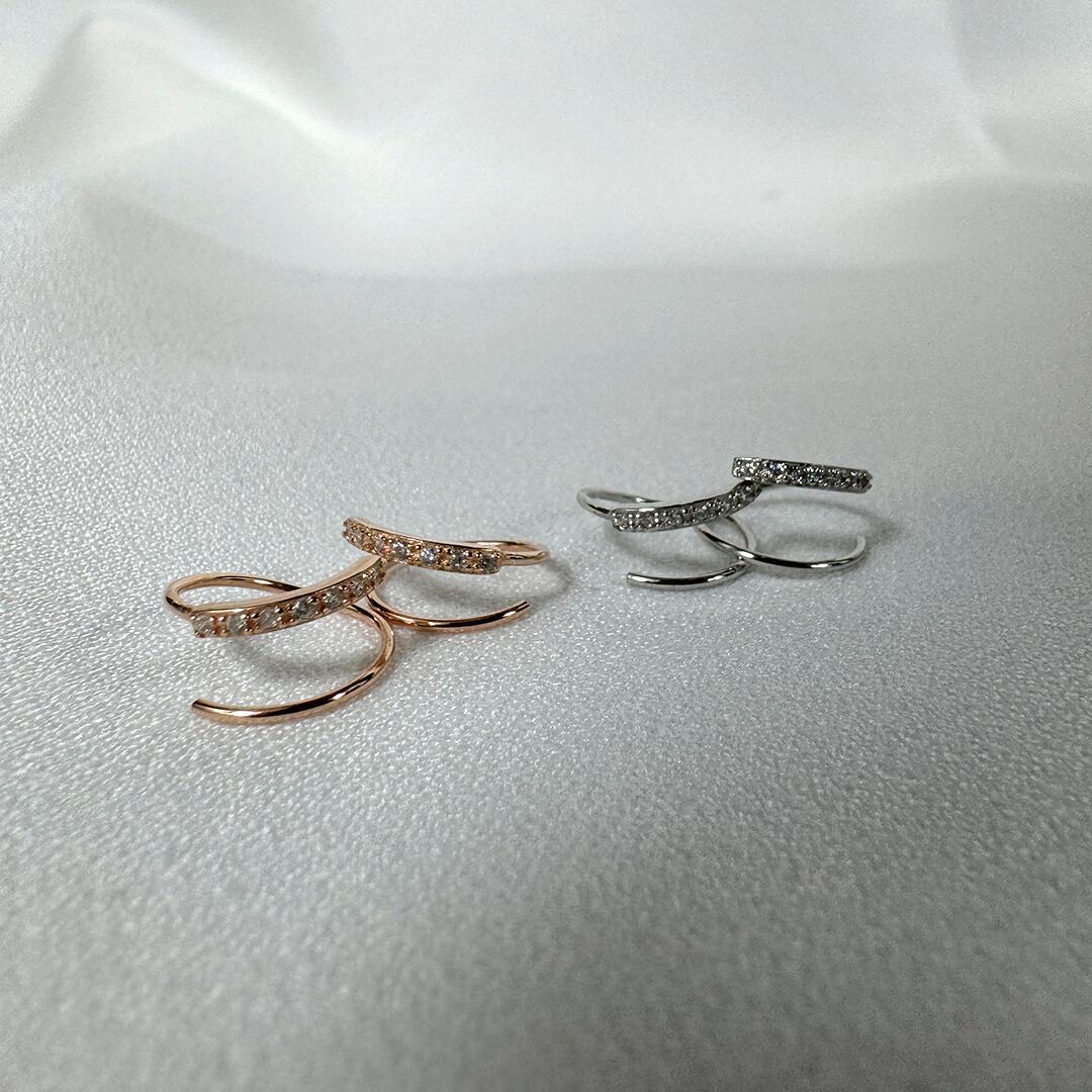 ねじりを加えたフープにジルコンが上品に輝くピアス。