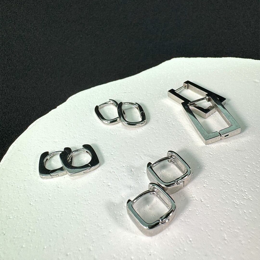 スクエアフォルムのスマートなラインが魅力的なシルバーのスクエアピアス。
