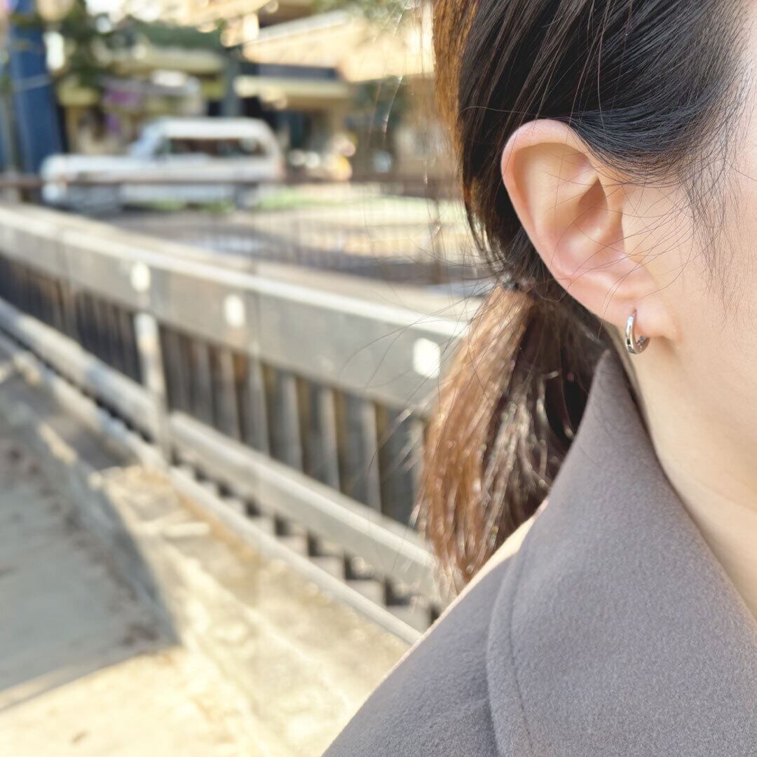 スクエアを加えたほんのり存在感を出してくれるピアス。シンプルなデザインにスクエアを取り入れたピアスはファッションのワンポイントとして引き立ててくれます。