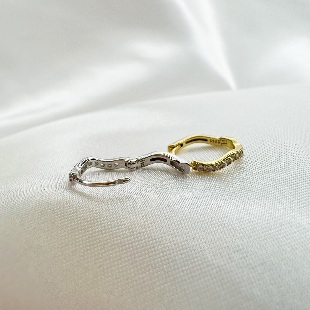 星座のような煌めきをイメージしたピアス。ゆるやかなうねりを描くフープラインがアクセントとなり、ジルコンの輝きが華やかさを演出します。