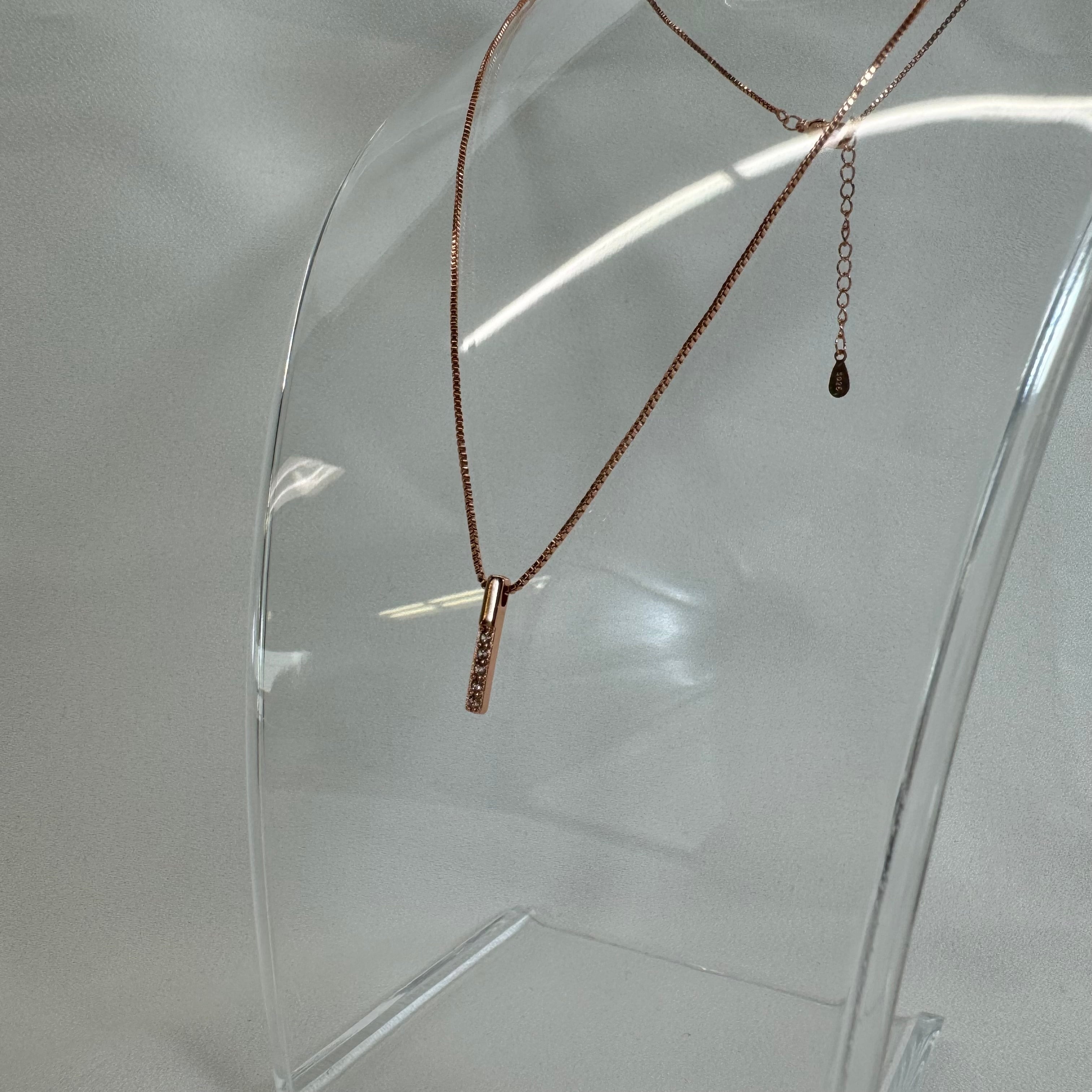 スクエア型のシンプルなモチーフと、程よい大きさのジルコンを組み合わせたネックレス。上品さと可愛さの両方を兼ね備えたデザインが、大人っぽさをより魅力的に引き出します。